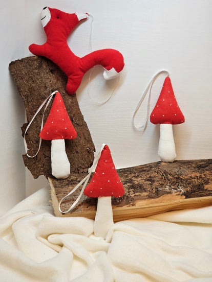 Dieses handgefertigte Eichhörnchen aus hochwertigem Baumwollstoff, begleitet von drei dekorativen Fliegenpilzen, ist eine charmante Herbstdekoration. Ideal für Fensterbänke, Regale oder für einen "Strauß" aus Korkenzieherweiden-Ästen. Dazu noch golden angemalte Walnüsse, die die herbstliche Stimmung perfekt abrunden.