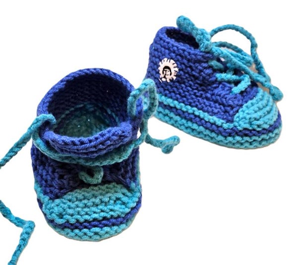 Diese niedlichen Baby-“Chucks” sind das perfekte Accessoire für das Outfit eines coolen Babys. Hergestellt aus 100% weichem Baumwollgarn, hergestellt aus hochwertigem Rainbow Cotton 8/4, bieten sie hautsympathischen Tragekomfort, halten sie im Sommer die kleinen Füßchen warm und wirken gleichzeitig temperaturausgleichend. Die Schühchen bestehen aus reiner Baumwolle und sind leicht elastisch – ideal für wachsende Babyfüße.