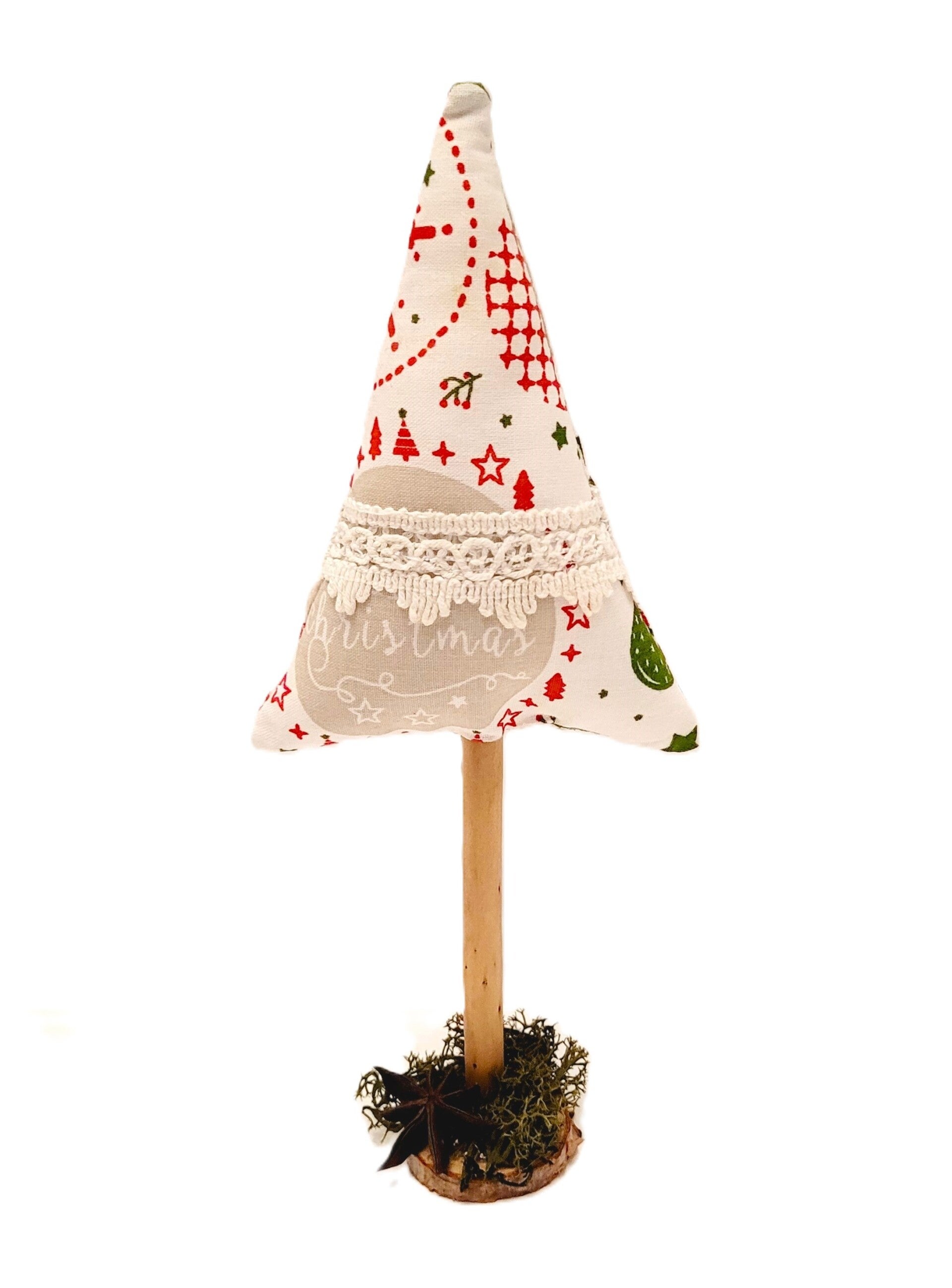 Jeder Baum ist ein Unikat, mit Liebe zum Detail gefertigt. Die Stoffe variieren – von traditionellem Grün bis zu modernen Mustern – und verleihen jedem Baum seinen eigenen Charme. Perfekt, um auf einem Sideboard, Fensterbrett oder Kaminsims zu glänzen. Die Höhe der Bäumchen liegt bei etwa 27 bis 30 cm bei den großen Bäumchen. Die kleinen Bäumchen habe eine Größe von ca. 20 bis 23 cm.
