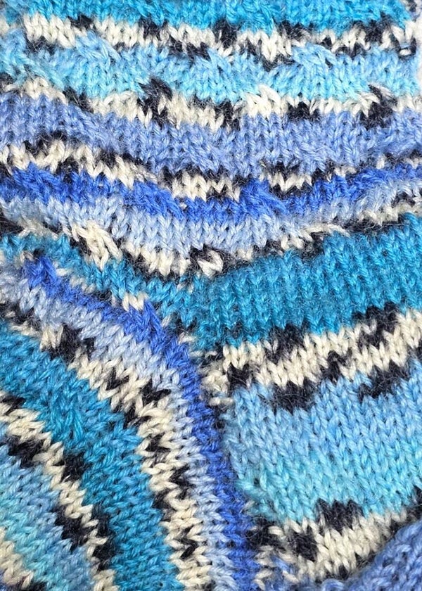 Diese wunderschöne Socke ist ein echter Hingucker! Sie besteht aus 75% Schurwolle und 25% Polyester, was sie nicht nur warm und bequem, sondern auch langlebig und pflegeleicht macht. Die Blautöne verleihen der Socke ein gemütliches und herbstliches Flair, perfekt für die kühleren Tage.
