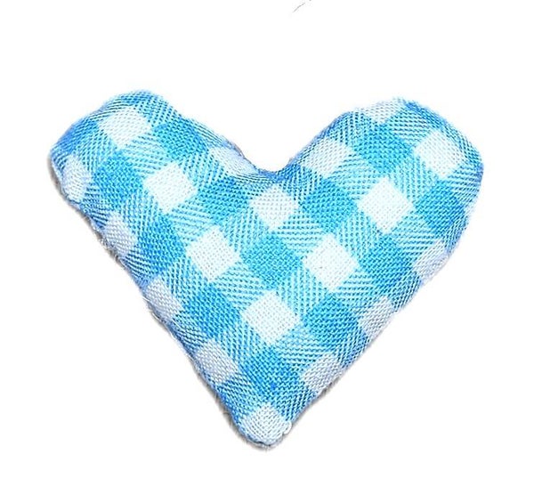 Material: Eine Seite des Herzens ist mit einem hübschen türkis-weißen Karomuster aus 100% Baumwolle. Die andere Seite schimmert in einem sanften hellblauen Farbton mit blauen Pünktchen und einem Holzherz gestaltet und besteht ebenfalls aus Baumwolle.